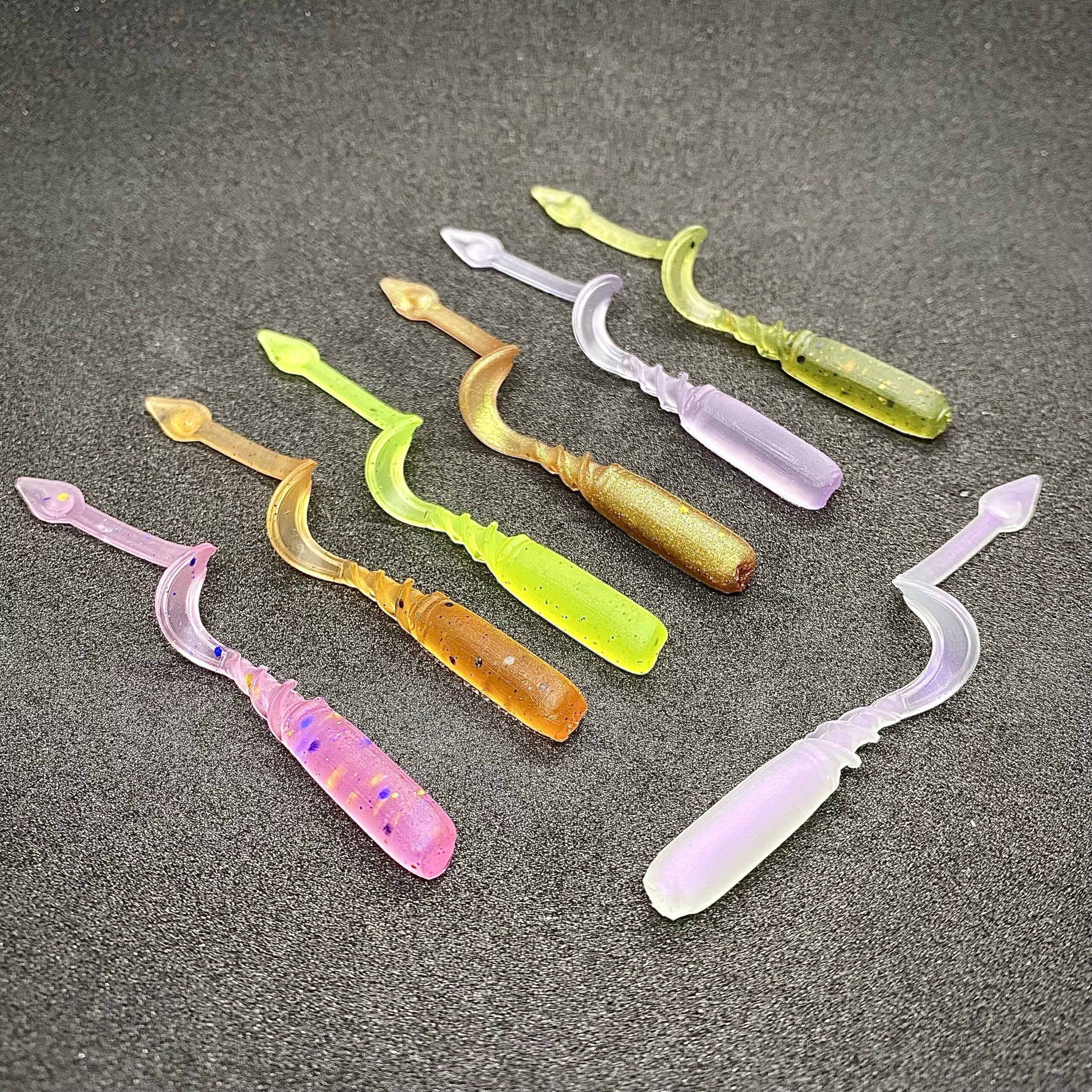 Lombriz tipo curly para rockfishing y light game de 75mm.