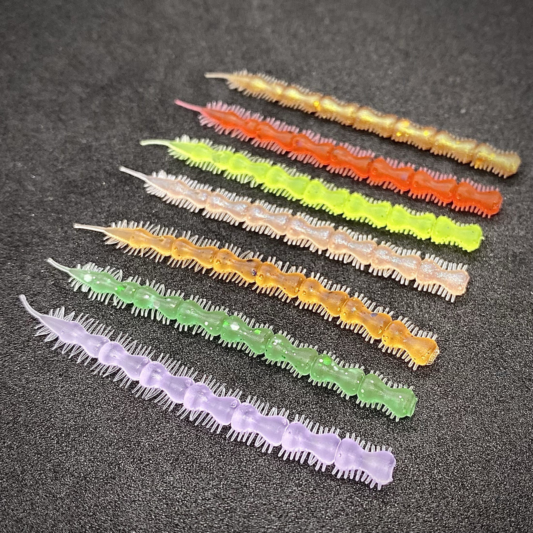 La Laiyoworm es una imitación de anélido en una talla de 65mm. Diseñada e ideada en estrecha colaboración con el pescador malagueño Rafael A.K.A. «Laiyo», posee varias características que determinan su acción de pesca. Por un lado, se estructura a través de un sistema de doble articulación. Se compone de una serie de segmentos y, añadida a la articulación habitual por unión de estos segmentos, presenta un estrechamiento dentro de cada uno de ellos. Esta estructura le confiere dos propiedades básicas: una flexibilidad máxima y un perfil más irregular que una estructura monosegmental, algo más parecido a un gusano contrayéndose y alargándose al moverse por el fondo… Además de esta característica construcción, posee otra serie de rasgos distintivos: una sección redonda vs. la más habitual sección ovalada, un perfil fino que se mantiene constante durante casi toda la longitud del cuerpo, lo que nos permitirá recortarla a voluntad para usarla en la longitud que deseemos en cada momento, una infinidad de patitas laterales y un «assist gap» para facilitar la instalación de un assit hook trasero. Y esta última característica es fundamental para este modelo, pues mostrará toda su efectividad equipado con un anzuelo en la zona trasera, dándonos muchísimas de esas capturas de espáridos y peces mordedores que a menudo cuesta engañar y mucho más clavar. Sin obviar, por supuesto, peces de buena talla que la morderán sin miedo. Después de un buen tiempo de pruebas en múltiples escenarios y condiciones, mi mejor resumen es que lo saca todo, lo grande y lo pequeño… Así que no bajes la guardia con la Laiyoworm… entre col y col, lechuga!