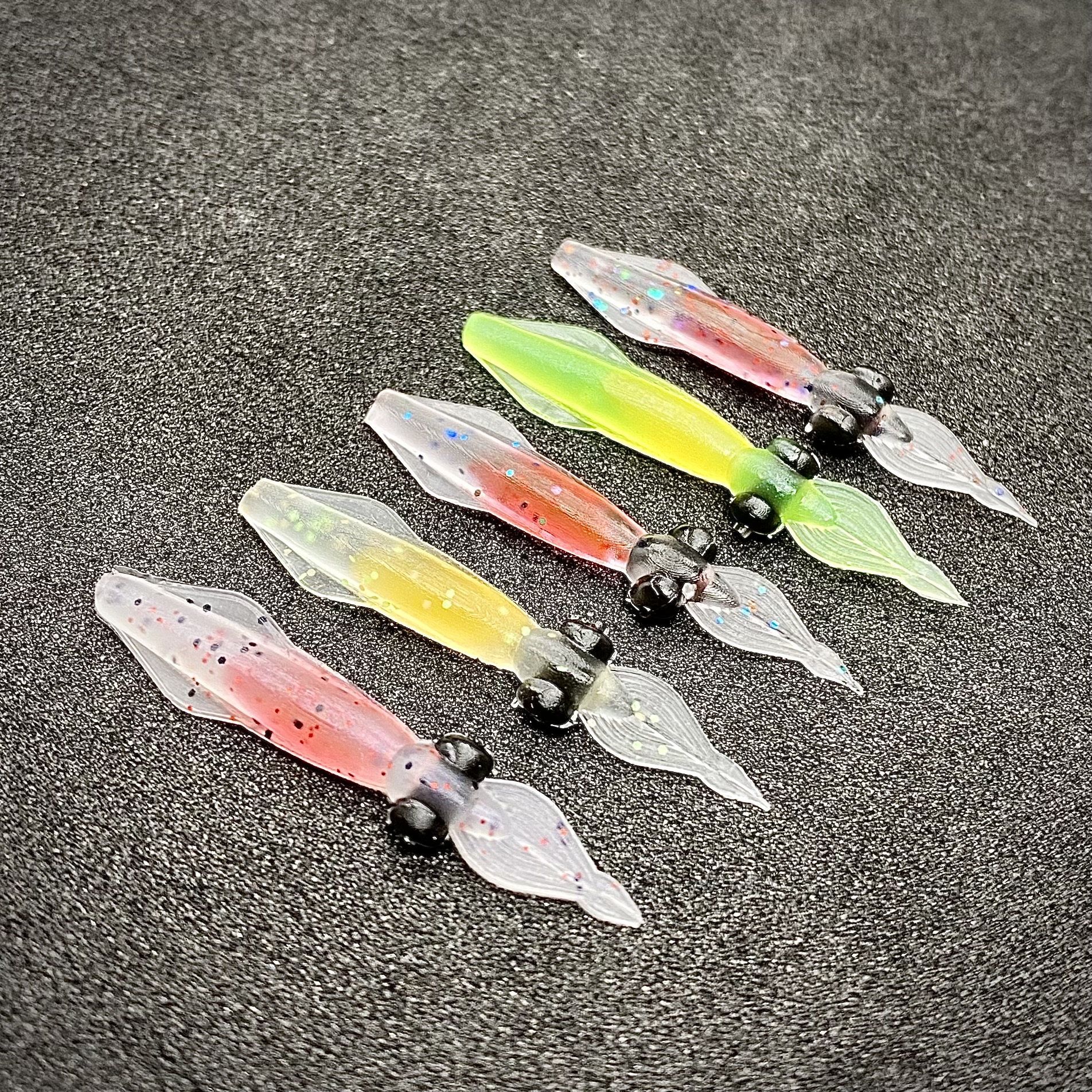 Este vinilo para ajing es realmente fino y está pensado para pescar con muy poco peso, no recomendamos utilizar pesos por encima del 1,5g… 1,8g como máximo y haciendo un exceso.